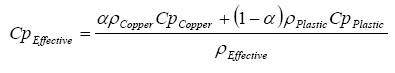 如圖3a,在導(dǎo)線架模型兩端有兩個(gè)導(dǎo)熱性很強(qiáng)的立方體,我們?cè)谝欢耸┘訜嵩矗诹硪欢耸┮怨潭ǖ臒醾鲗?dǎo)系數(shù)。除去這些,模型總長(zhǎng)10mm。模型寬高分別為0.2mm和1mm。引線架覆蓋系數(shù),α,為0.5。材料性能計(jì)算公式如下: