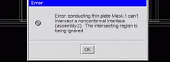你會(huì)看見一個(gè)警告信息,說(shuō)是thin plate 和non-conformal的邊界相交了. 注意這個(gè)提示實(shí)際上產(chǎn)告訴你,你違反了規(guī)則,如圖2所示。