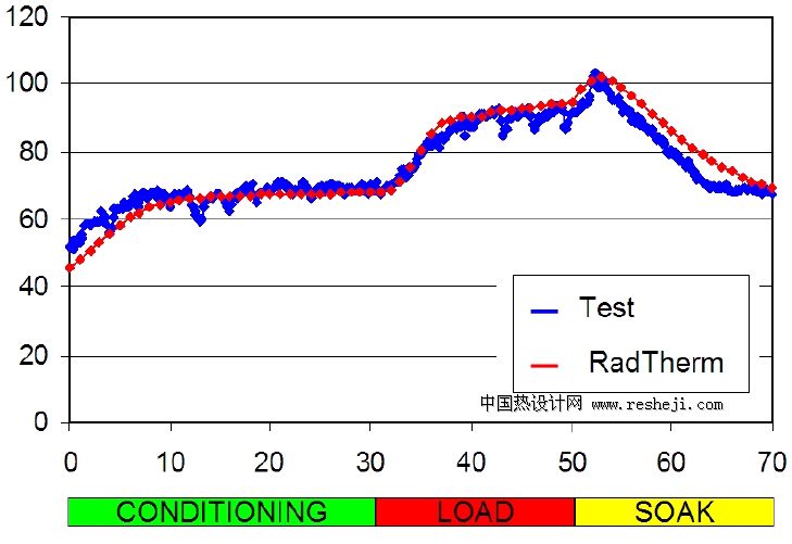 國(guó)內(nèi)某整車(chē)廠利用Radtherm完成了某車(chē)型發(fā)動(dòng)機(jī)艙的熱分析。在這個(gè)項(xiàng)目中,發(fā)動(dòng)機(jī)艙內(nèi)的對(duì)流傳熱系數(shù)及流體溫度由Star CCM+給出穩(wěn)態(tài)結(jié)果,Radtherm考慮熱輻射等因素分析發(fā)動(dòng)機(jī)艙的瞬態(tài)熱狀況,計(jì)算結(jié)果與實(shí)測(cè)得到的發(fā)動(dòng)機(jī)部分零部件的溫度十分吻合,從而通過(guò)快速地仿真計(jì)算即很好地完成了發(fā)動(dòng)機(jī)艙的隔熱設(shè)計(jì)。