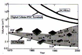 圖1 電子產(chǎn)品及IC尺寸演進(jìn)
