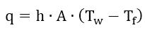 式中,q為傳熱量,h稱為對(duì)流換熱系數(shù),A為換熱面面積,Tw為固體表面溫度,Tf為流體溫度。