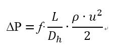 在忽略入口效應和出口效應時,流體以層流狀態流過一個充分發展的散熱器通道時,阻力產生的原因主要是流體粘性產生的內摩擦力。這時,壓降可以使用范寧公式(Fanning formula)計算: