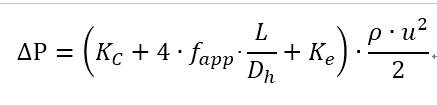其中,Kc和Ke分表示入口和出口處的壓降效應參數,fapp為表觀摩擦系數。式中一系列參數又是使用如下公式近似的。