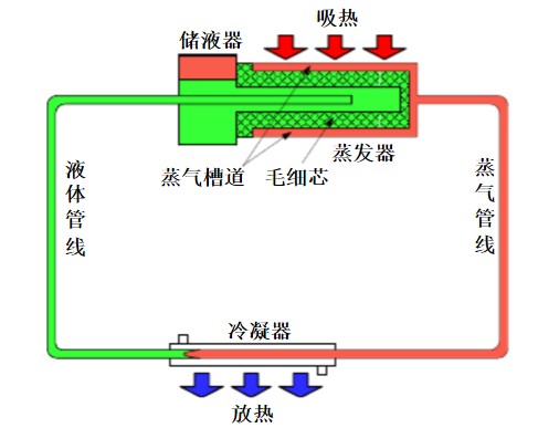 3. 在流體持續(xù)的蒸發(fā)和冷凝的過程中,CPU的熱量被均散到整個(gè)產(chǎn)品空間中,最終通過設(shè)備外殼散失到環(huán)境中.