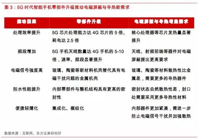 1、5G推動電磁屏蔽和導熱材料及器件需求快速提升