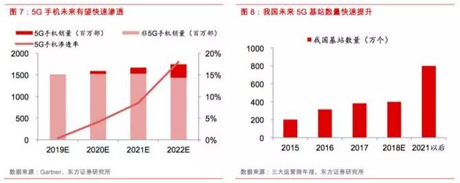 以導熱石墨為例,5G手機有望在更多關鍵零部件部位采用定制化導熱石墨方案,同時復合型和多層高導熱膜由于具備更優的散熱效果而有望被更多采用,從而帶來導熱石墨單機價值的顯著提升。假設未來5G手機中的導熱石墨單價是4G手機中的2.5倍,伴隨5G手機滲透率的提升,應用于智能手機的導熱石墨市場規模將有望實現翻倍以上增長。