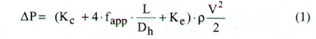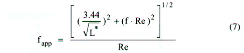 對于流動起始段,表面摩擦因數fapp與摩擦因數f有關;對于充分發展段,表面摩擦因數fapp 可由下式計算: