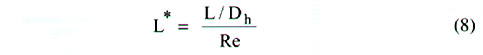 用于1式的流體充分發展段的摩擦因數f是散熱片溝道的縱橫比 (b/ Hf)和Reynolds數的函數,其表達式如下: