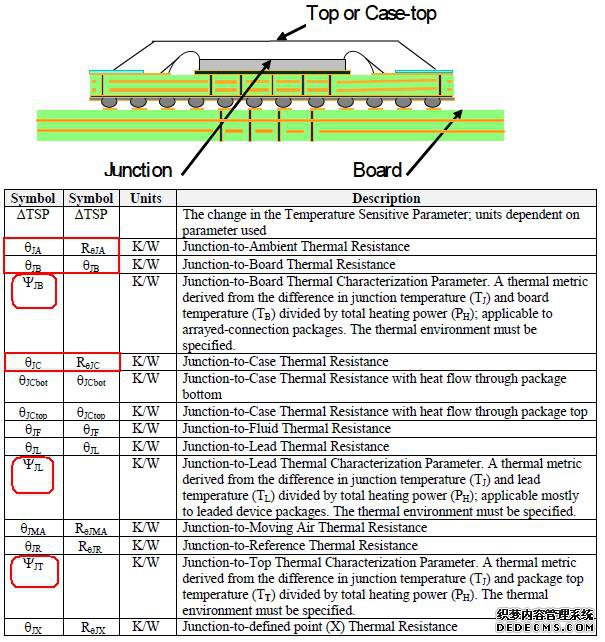 首先看英文的指引,是指JESD51中關于熱阻和熱特性參數的表格定義。