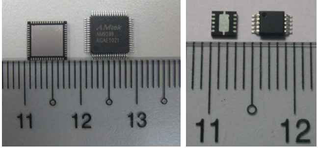 QFN和DFN是由QFP封裝演變而來。其最大區別是將四邊管腳收至芯片內部,使得芯片封裝體積大大縮減。