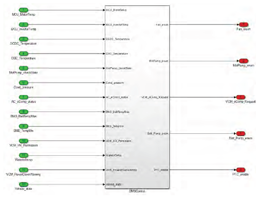 借助整車熱管理被控對象離線模型,實現熱管理控制邏輯的快速開發。通過算法的Simulink 模型與整車熱管理系統被控對象模型的聯仿,實現對關鍵控制參數的標定以及熱管理系統能耗的優化分析。
